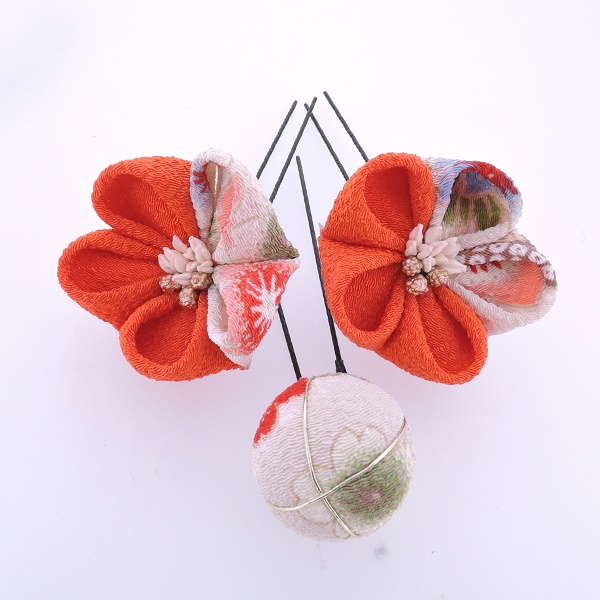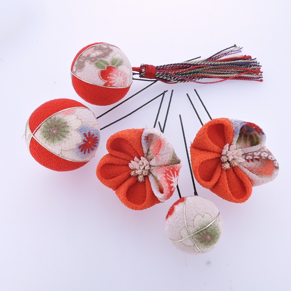 > ちりめん細工・ちりめん玉5点セット オレンジ