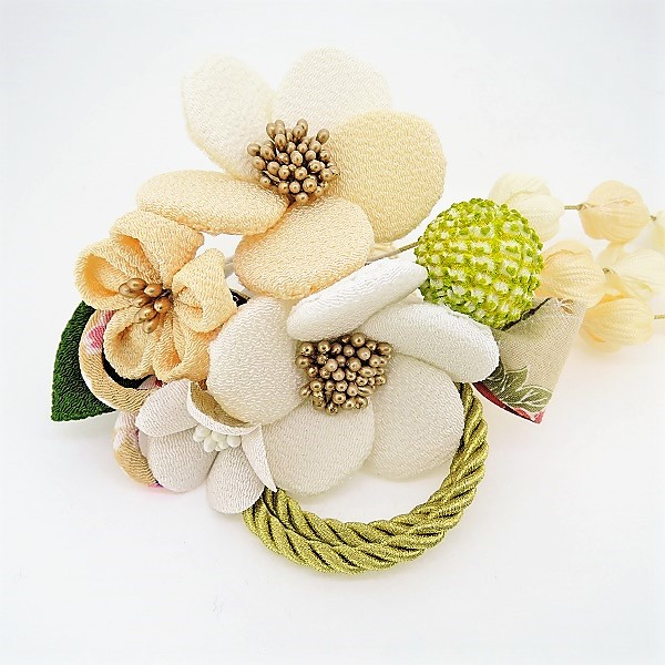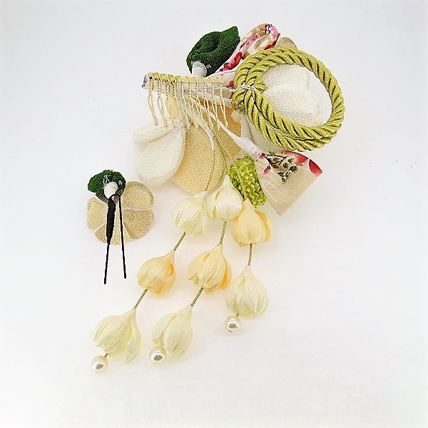ちりめん梅コーム2点セット オフホワイト