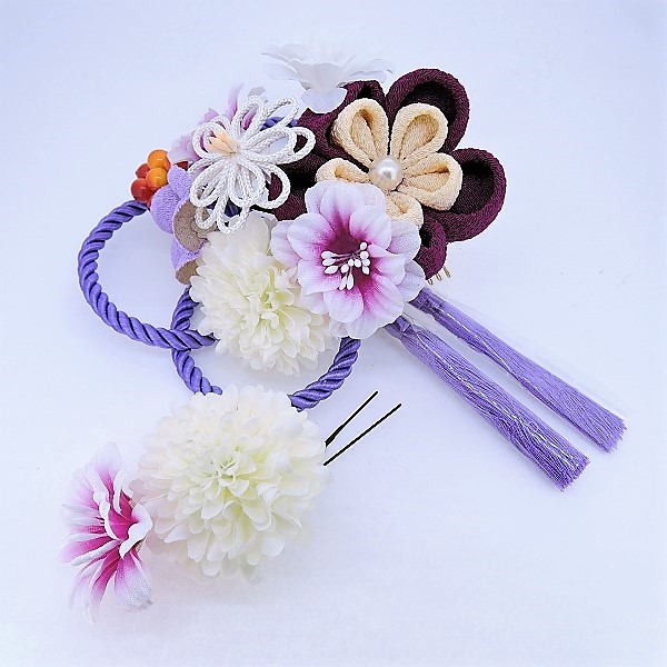 > ちりめん梅つまみ細工コーム2点セット 紫