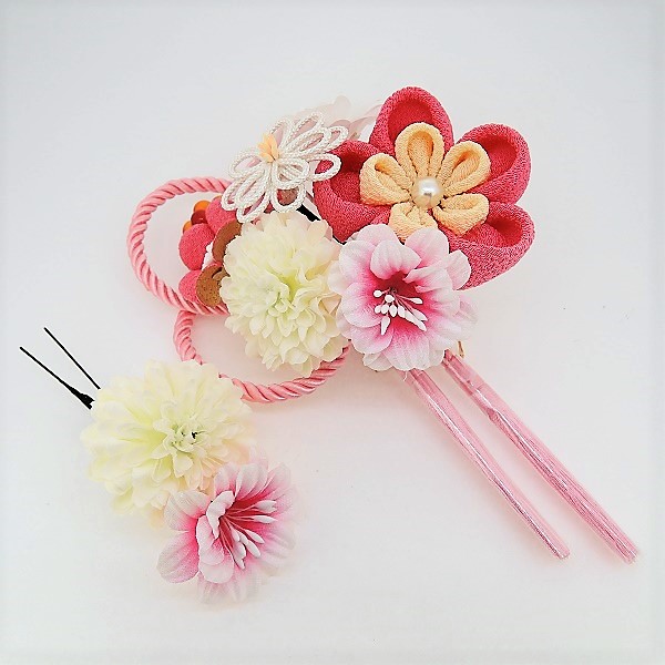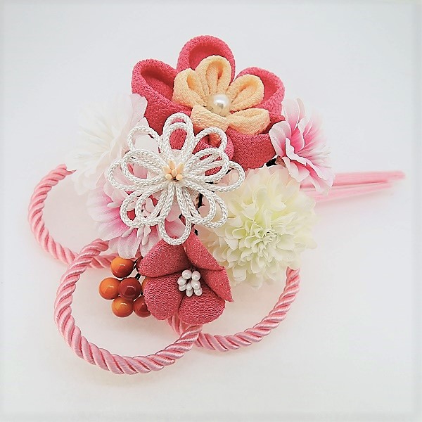 > ちりめん梅つまみ細工コーム2点セット ピンク