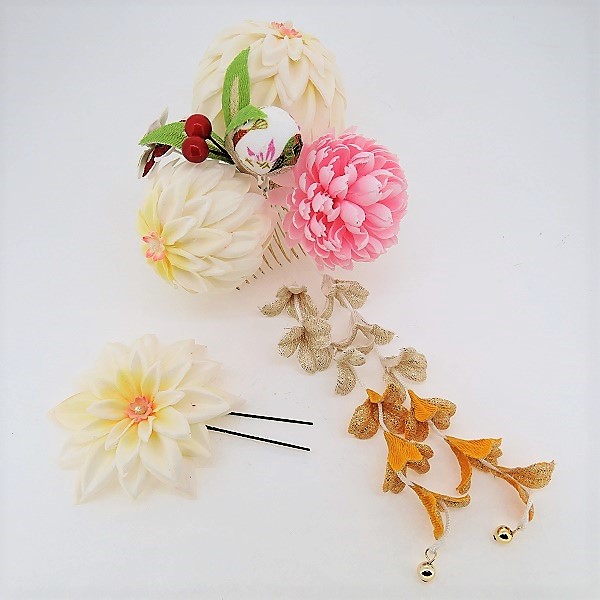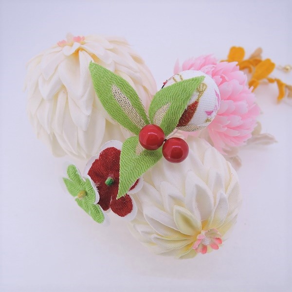 成人式髪飾り花てまりふじ下がりコ-ム ホワイト