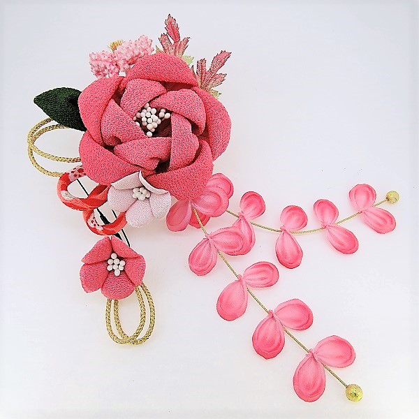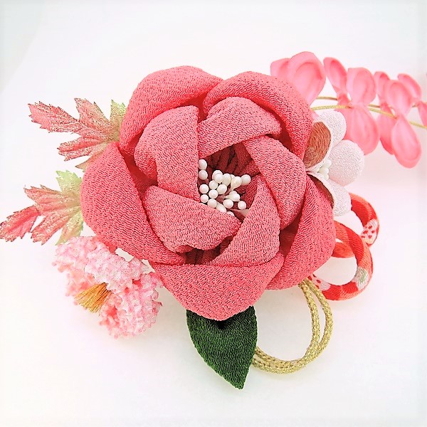 > ふっくらちりめん花飾りコ-ム2点セットピンク