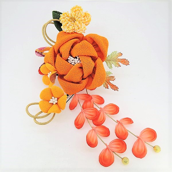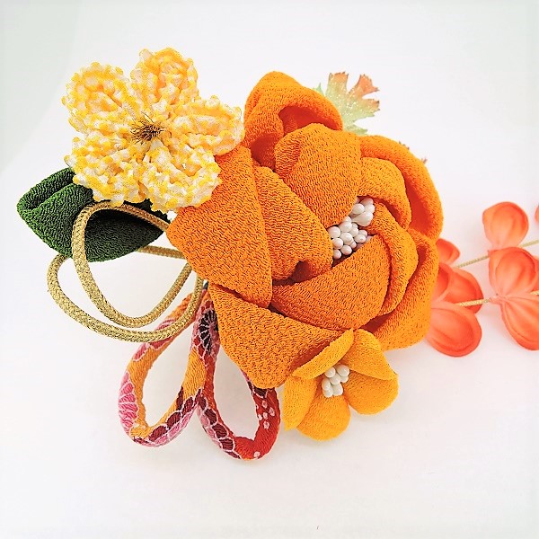 > ふっくらちりめん花飾りコ-ム2点セット オレンジ