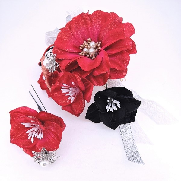 キラキラバラフラワ-コ-ム&ミニフラワ-2点セット 赤