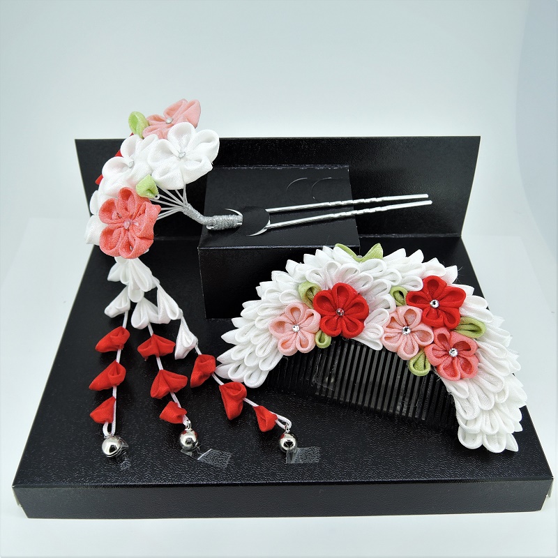 > つまみ細工かんざし つまみ細工くし 豪華2点セット 白