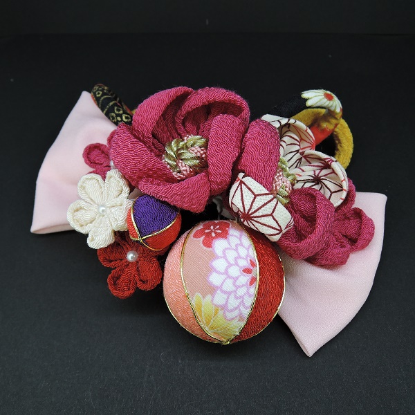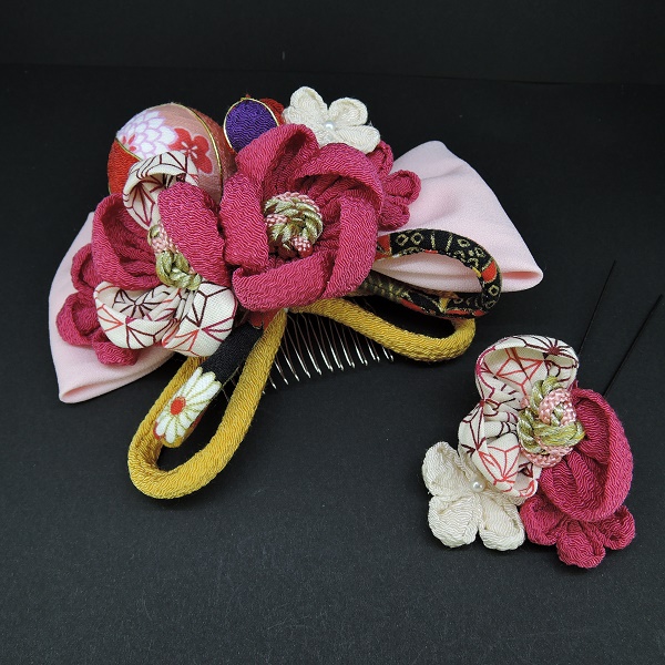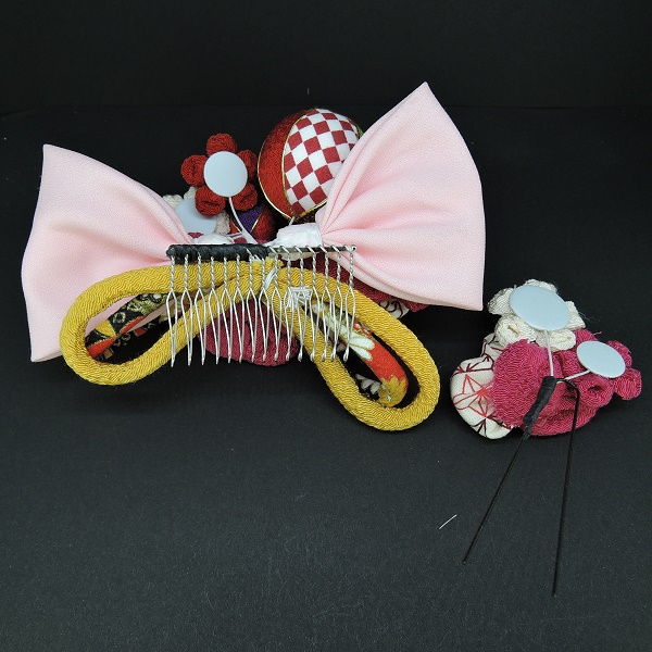 ちりめんつまみ・リボンコ-ム・ミニ2点セット ピンク