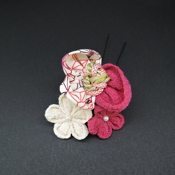 > ちりめんつまみ・リボンコ-ム・ミニ2点セット ピンク