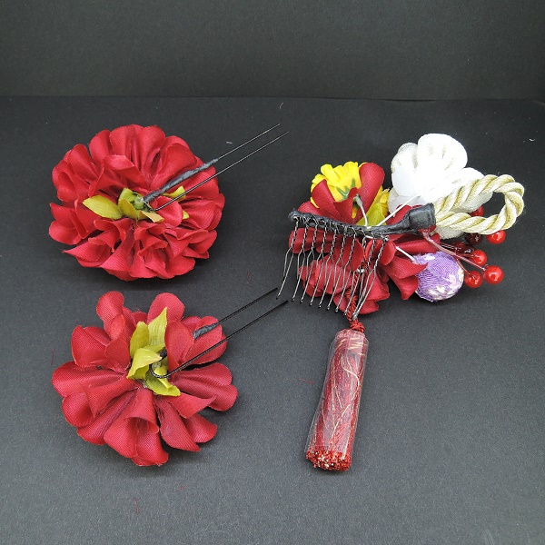 つまみ付フラワ-コ-ムふさ付・ミニ3点セット 赤