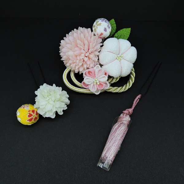 つまみ付フラワ-コ-ム・ミニ・ふさ付3点セット ピンク