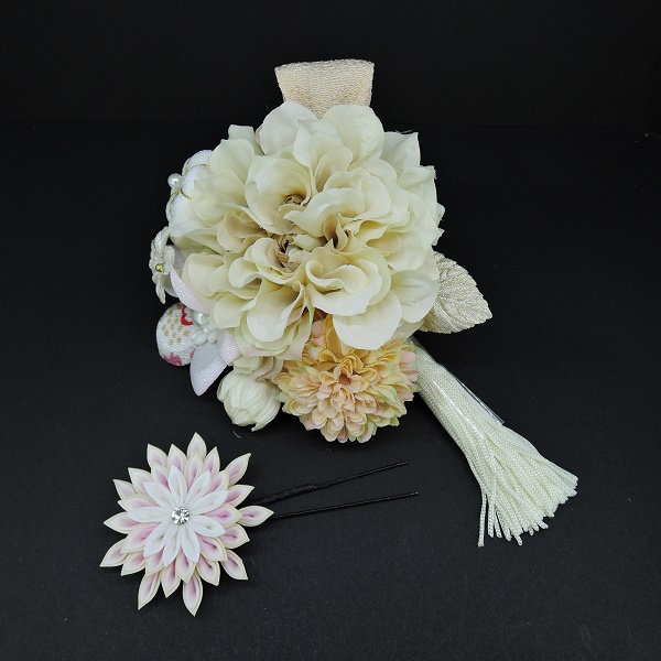 > つまみ付フラワ-コ-ム・ミニ2点セット オフ白