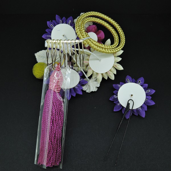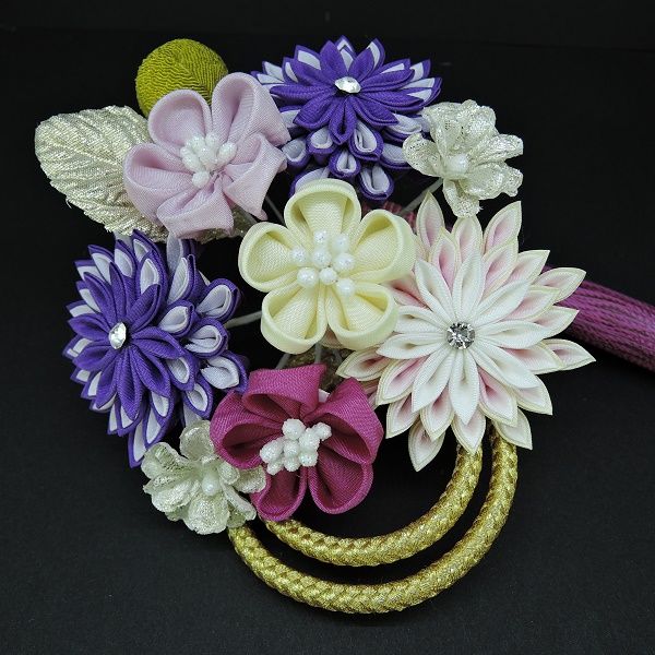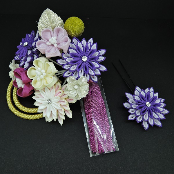 つまみ細工フラワ-コ-ム・ミニ2点セット パープル