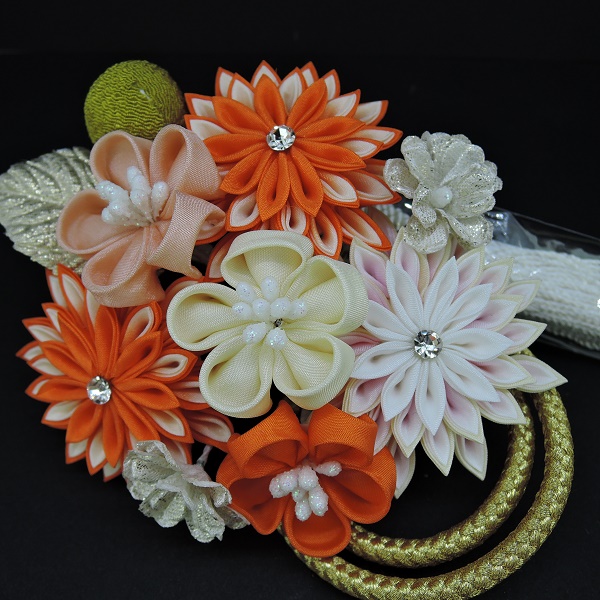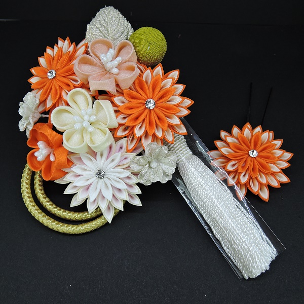 つまみ細工フラワ-コ-ム・ミニ2点セット オレンジ