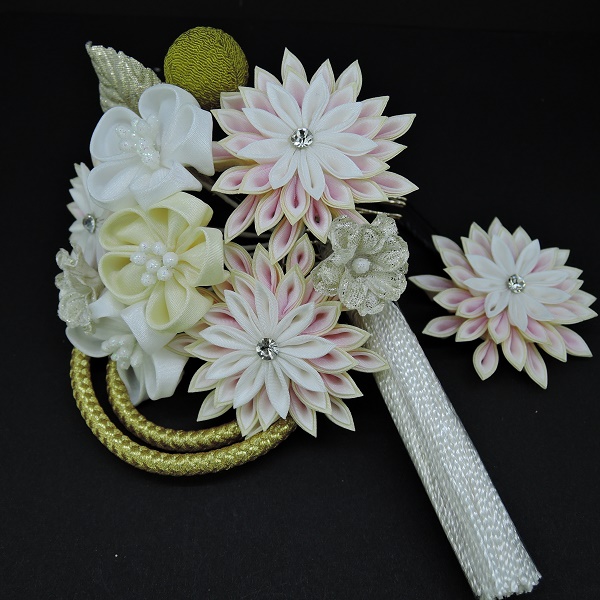 つまみ細工フラワ-コ-ム・ミニ2点セット 白
