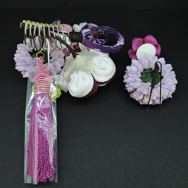 > つまみ細工フラワ-コ-ム・ミニ2点セット 白/パープル