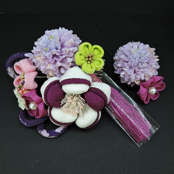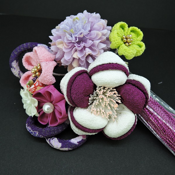 つまみ細工フラワ-コ-ム・ミニ2点セット 白/パープル