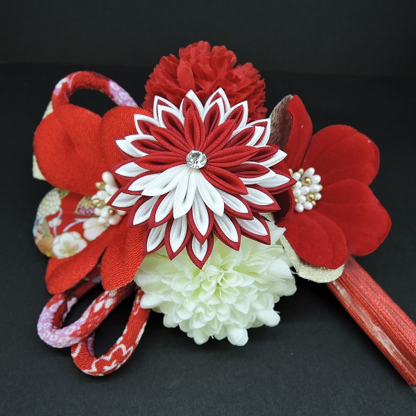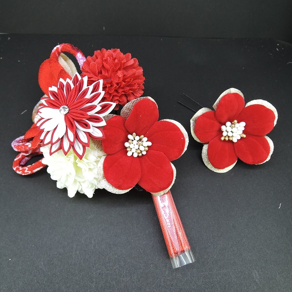 つまみ細工フラワ-コ-ム・ミニ2点セット 赤