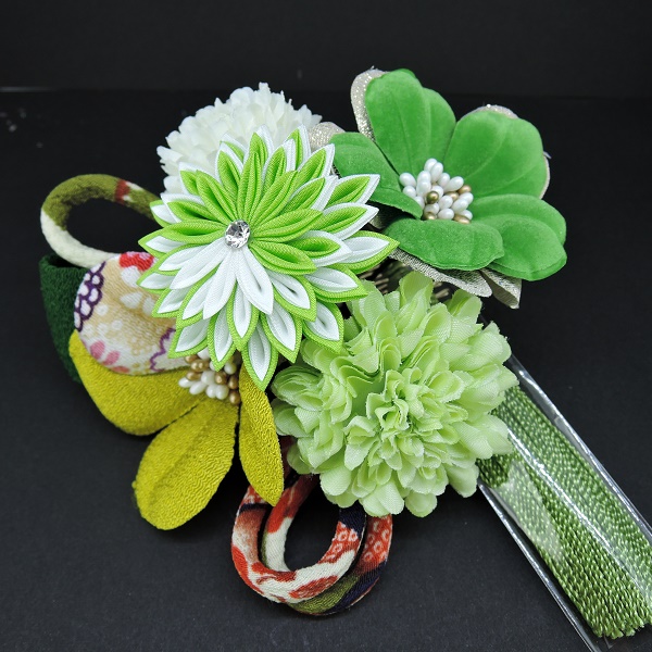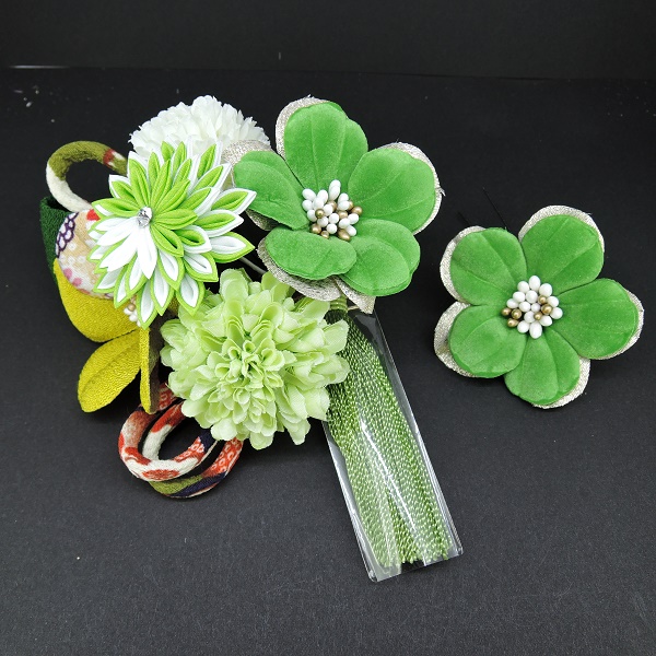 つまみ細工フラワ-コ-ム・ミニ2点セット グリ-ン
