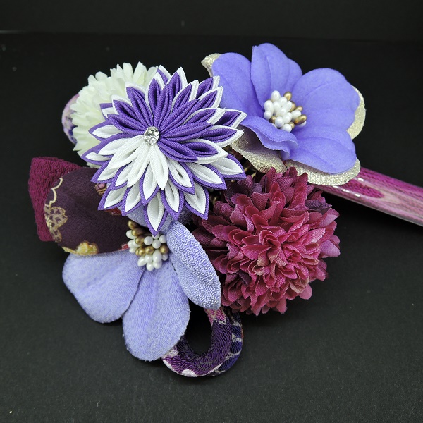 つまみ細工フラワ-コ-ム・ミニ2点セット パープル