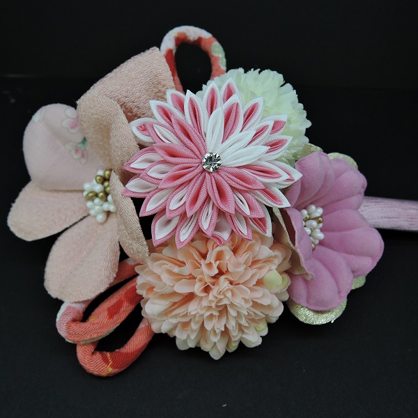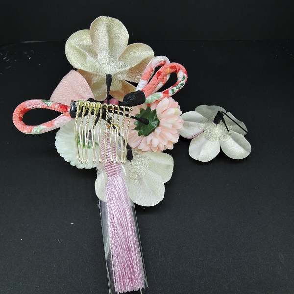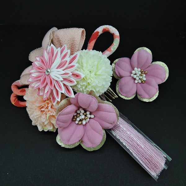 > つまみ細工フラワ-コ-ム・ミニ2点セット ピンク