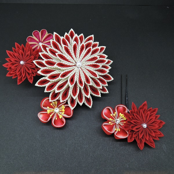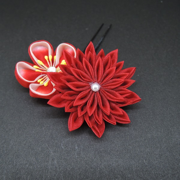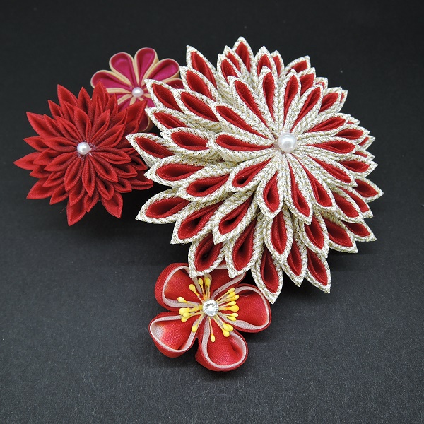 > つまみ菊コ-ム・ミニ2点セット 赤