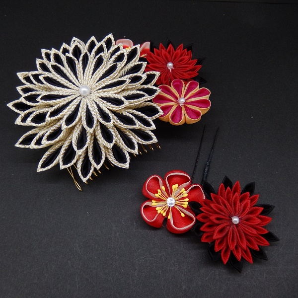 > つまみ菊コ-ム・ミニ2点セット 黒