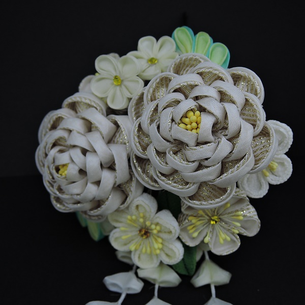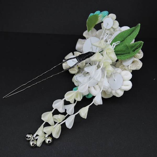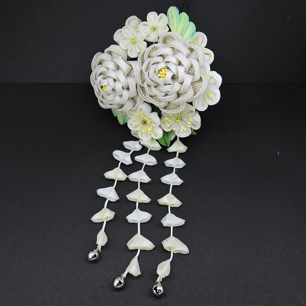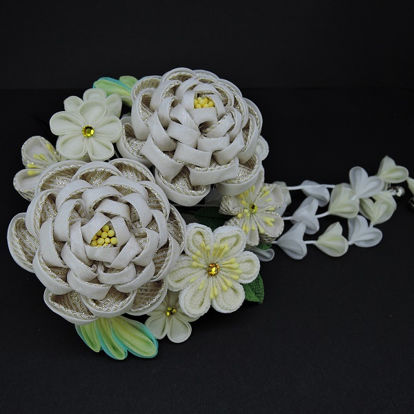 高級つまみ細工かんざしさがり付 オフホワイト