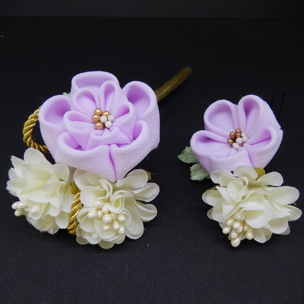 つまみふさ付ミニフラワー2点セット パープル