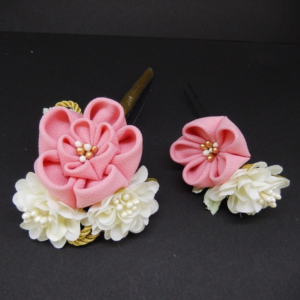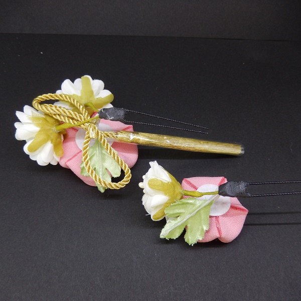 つまみふさ付ミニフラワー2点セット ピンク