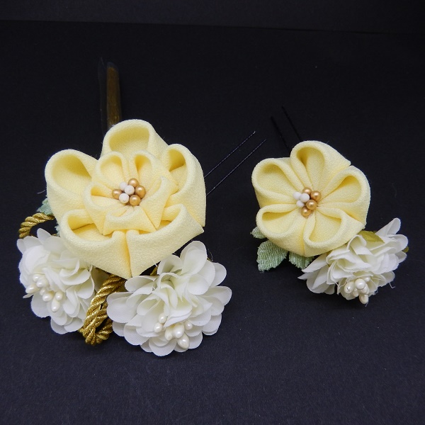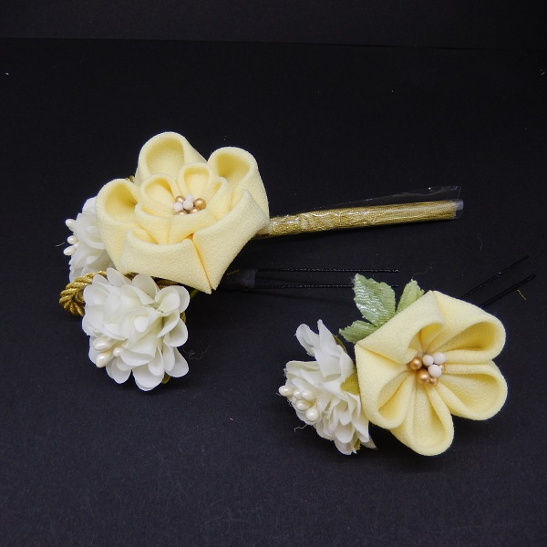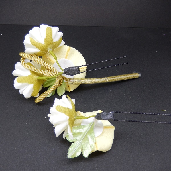 > つまみふさ付ミニフラワー2点セット オフ白