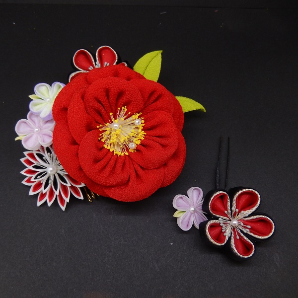 ちりめんつまみ牡丹コ-ム・ミニ2点セット 赤