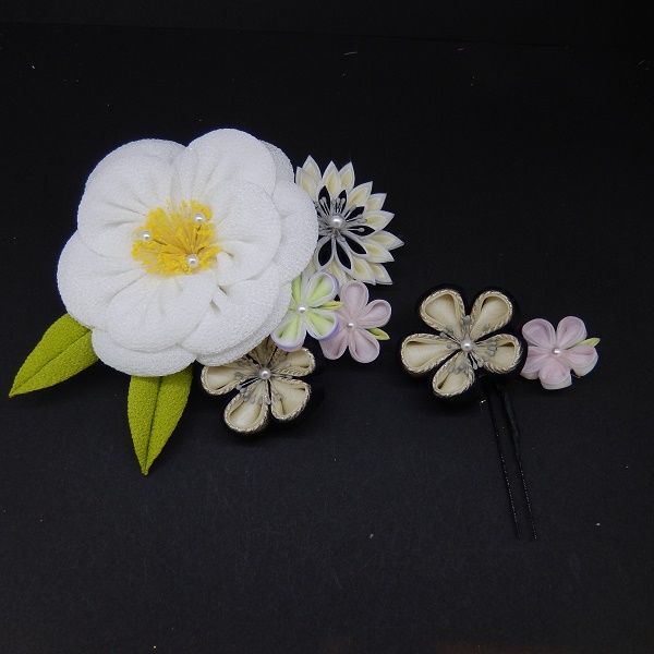 > ちりめんつまみ牡丹コ-ム・ミニ2点セット 白