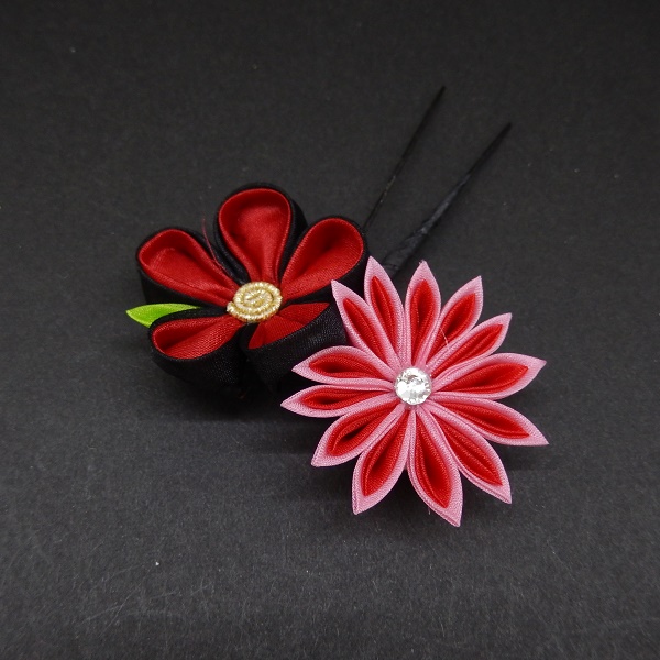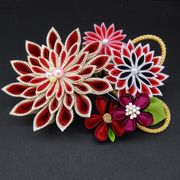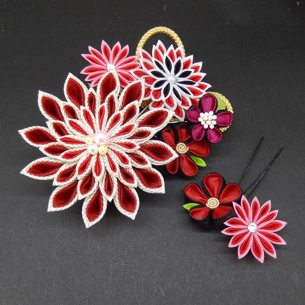> つまみ剣菊コ-ム・ミニ2点セット 赤