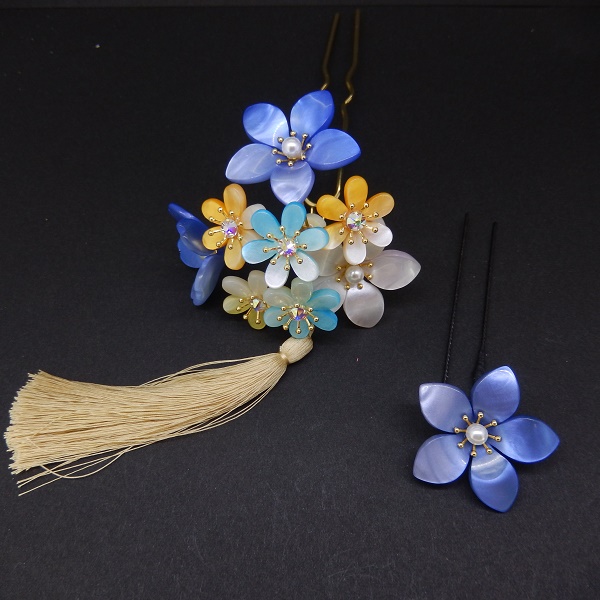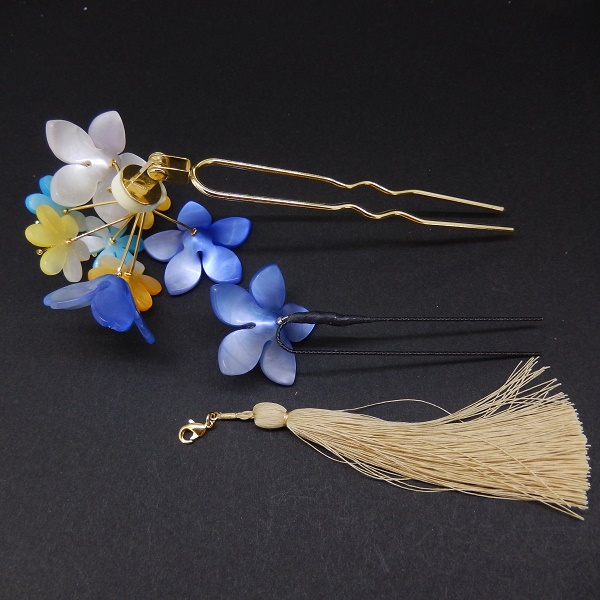 舞子ふさ付2本足かんざしミニ2点セット ブル-