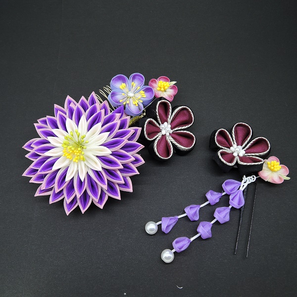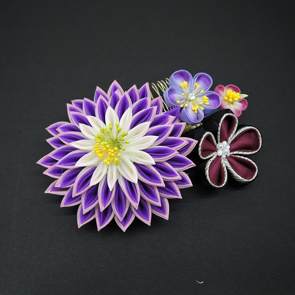 > つまみ細工剣菊コ-ム・ミニ2点セット 紫