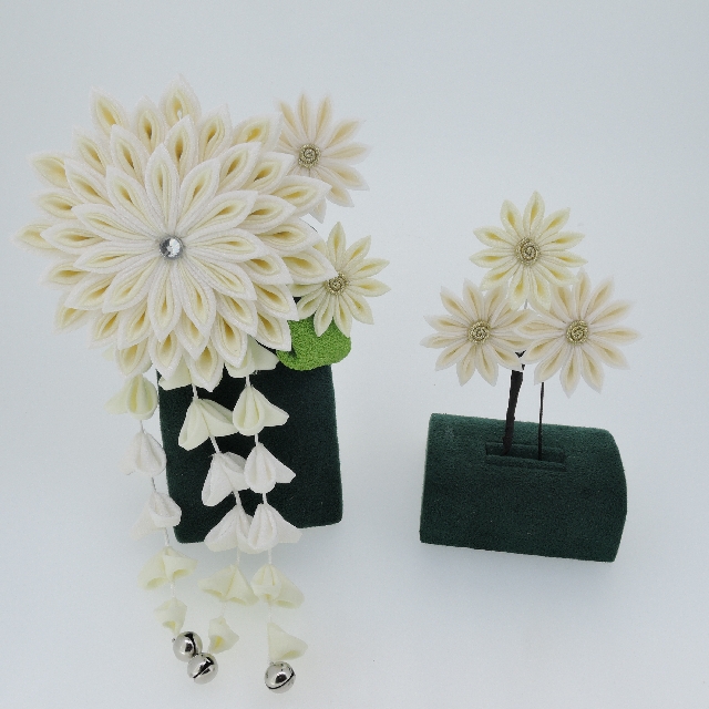 > つまみ細工 藤さがり付コーム&Uピン2点セット(白)