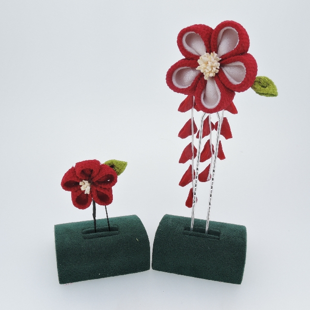 > つまみ細工 藤さがり付 かんざし&Uピン2点セット(赤)