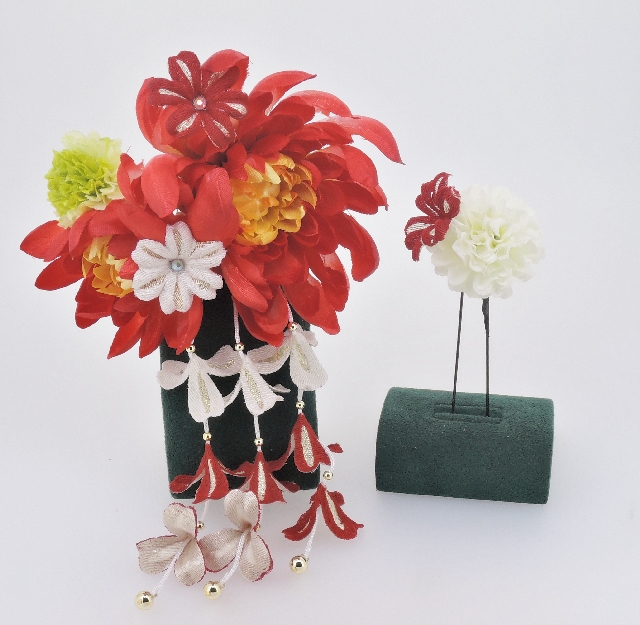> 菊さがり付 コーム&Uピン2点セット(赤)