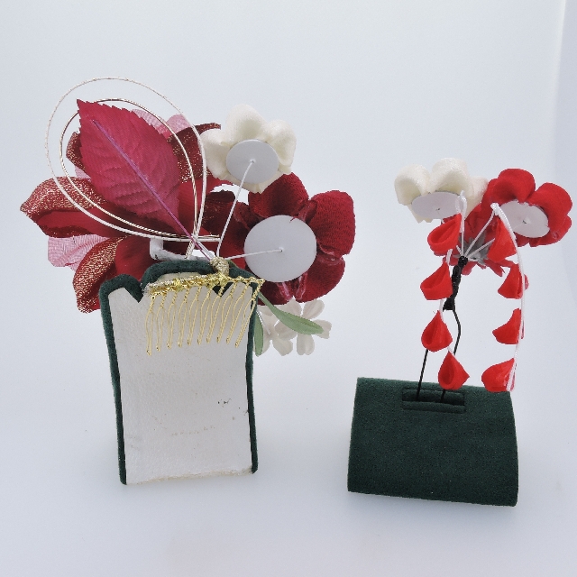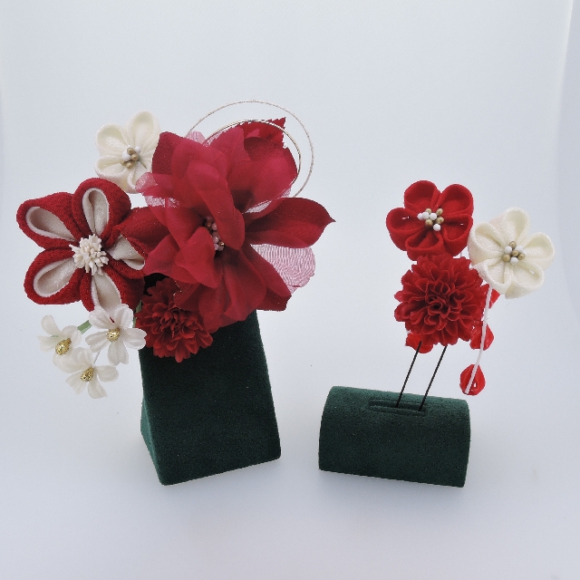 つまみ細工付 コーム&Uピン2点セット(赤)